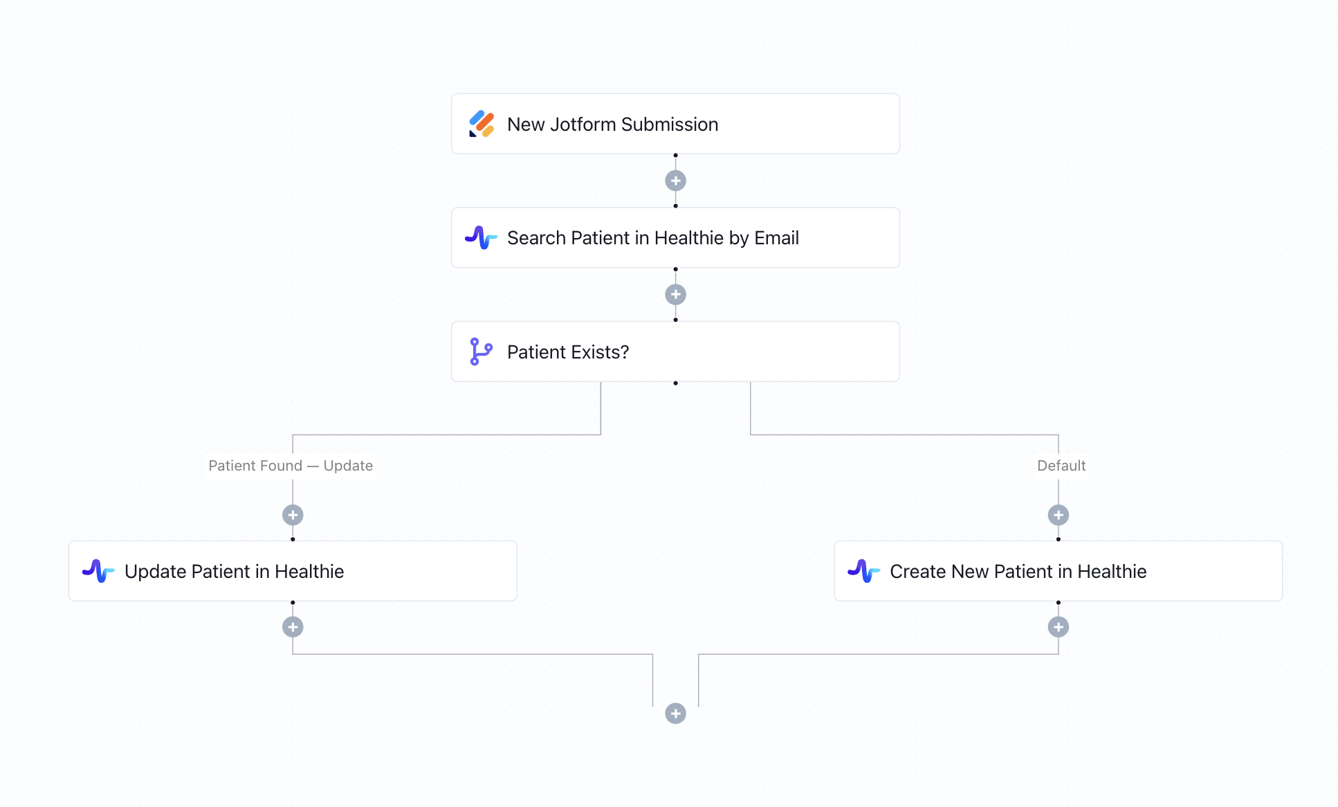 Every Jotform submission lands in Healthie. New patient or returning, handled automatically.