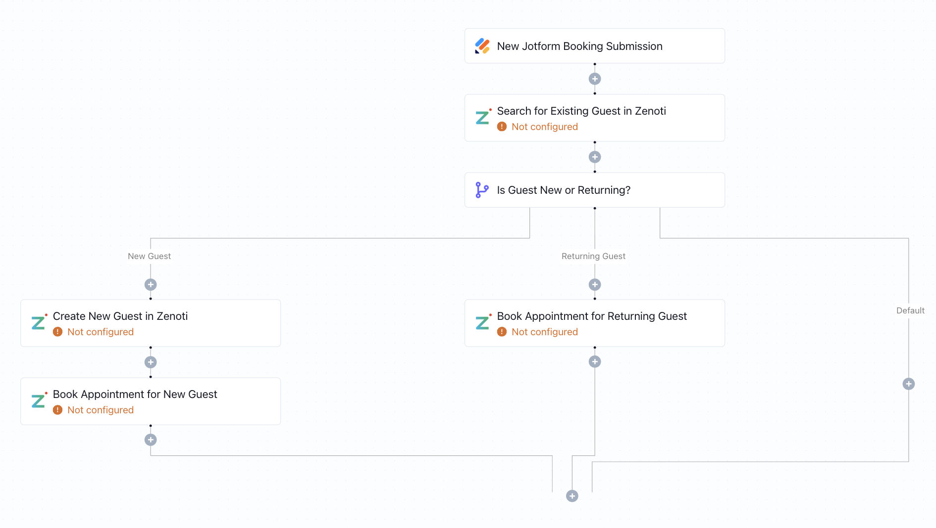 When a new Jotform is submitted, this workflow creates a guest profile and books their appointment in Zenoti - no manual entry required.